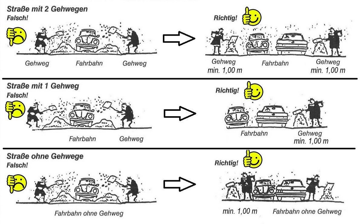 - Gewähren Sie den Räum- und Streufahrzeugen immer eine Durchfahrtsbreite von 3,50 m;