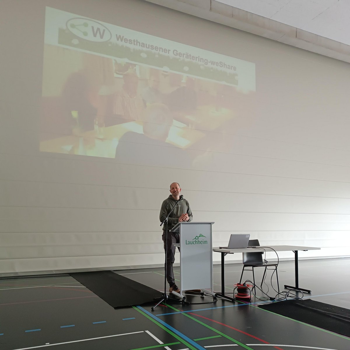 Im Anschluss an die Eröffnung fanden im zweiten Hallenteil unterschiedliche vielseitige Vorträge zu den folgenden Themen statt: Vorstellung der umgesetzten Klimaschutzmaßnahmen in den Jahren 2022 und 2023 (Stadt Lauchheim, Frau Mahler), Gebäudeenergiegesetz – Einfach erklärt (BENE Königsbronn, Herr Glatzle), Sanierung von Bestandsgebäuden und Fördermöglichkeiten (TK Baupartner, Herr Stempfle), Bürgerenergiegenossenschaft (Oliver Dier) sowie zum Thema Selbstbau von PV-Anlagen (Westhausener Gerätering-weShare e. V., Herr Schwab).