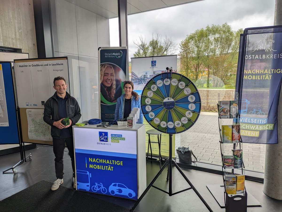 Im Foyer konnten Informationen rund um die Themen nachhaltige Mobilität (Landratsamt Aalen), Carsharing (Firma deer aus Calw) und Energieberatung für Unternehmen (KEFF+ der Hochschule) eingeholt werden.